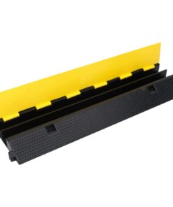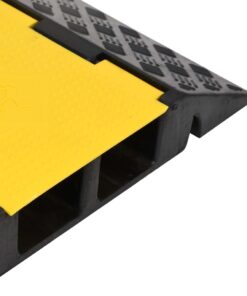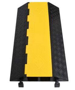 De ramp is gemaakt van rubber, dat lichtgewicht, slijtvast en duurzaam is. De helling is felgeel gekleurd en heeft waarschuwingssymbolen op het oppervlak om hem beter zichtbaar te maken. Elke helling heeft 2 kanalen om uw kabels te geleiden en te beschermen en is bestand tegen een momentane belasting van maximaal 2,5 ton. De kabels kunnen eenvoudig worden geplaatst of verwijderd door de bovenklep omhoog te klappen. Dankzij het modulaire ontwerp kunnen meerdere hellingen worden gekoppeld om langere kabels te kunnen verwerken.