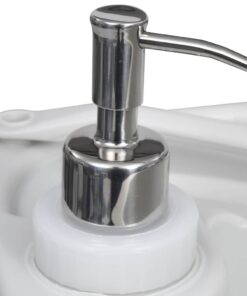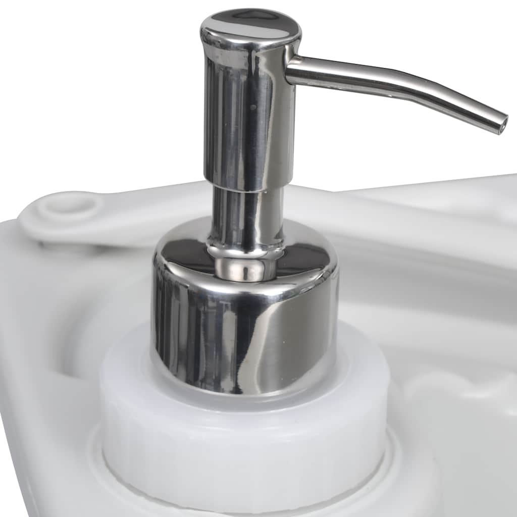 Het handwasstation is uitgerust met een zeepdispenser van 3 liter, een handdoekenrek en een schoonwatertank van 17 liter. Het beschikt over een aanraakloos bedieningsontwerp omdat je het water kunt laten stromen door op de voetpomp te stappen. De wasbak heeft twee ingebouwde wielen voor eenvoudig transport.