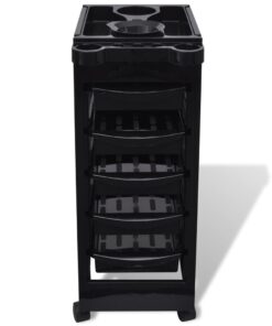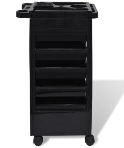 Het bovenblad heeft geïntegreerde houders voor haardrogers en zijhouders voor spuitflessen. De lades zijn gemaakt van sterk kunststof en kunnen moeiteloos worden in- en uitgetrokken. Dankzij de vier wielen kan je de trolley eenvoudig verplaatsen en binnen handbereik houden.