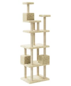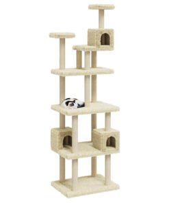 Je harige vriendjes kunnen hun klauwen scherper maken met de krabpalen die met sisal touw omwikkeld zijn. Dit zorgt voor een gezonde uitlaatklep voor de krablust van je kat. Ze vinden het ook heerlijk om achter elkaar aan te rennen terwijl ze van en op dit leuke speelmeubel springen. Wanneer ze genoeg gespeeld hebben, kunnen je kleine vriendjes uitrusten op de bovenste platformen, waar ze een beter uitzicht hebben. Ze kunnen zich ook verschuilen in het knusse huisje om een dutje te doen of lekker ontspannen op het comfortabele pluche zitvlak.