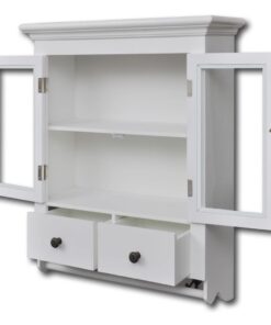 Dit elegante houten wandkastje in antieke stijl geeft je voldoende opslagruimte in de keuken en helpt je spullen geordend te houden.