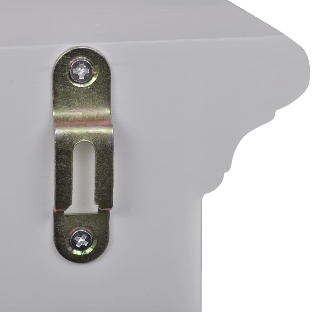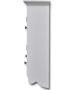 De kast is gemaakt van hoogwaardig hout en kan een vochtige omgeving weerstaan. De afwerking met witte verf maakt hem eenvoudig te reinigen met een vochtige doek.