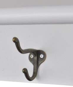 De kast heeft 2 lades en 2 schappen, hier kan je makkelijk ontbijtgranen, kruiden, snacks, ingeblikt voedsel en andere spullen bewaren. De kast heeft 2 glazen deuren en 2 lades die makkelijk open gaan, zo kan je snel bij de dingen die je nodig hebt. De haken en pinnen kunnen gebruikt worden voor mokken of handdoeken.