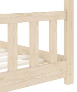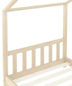 Het bed is slim ontworpen met een frame in boomhut-stijl waar je bedgordijnen aan kunt ophangen om privacy voor je kind te creëren. Het kan ook worden gebruikt als een leeshoek of als speelhuis voor je kind. Dit bedframe is gemaakt van massief grenenhout en is buitengewoon stevig en duurzaam. De sterke lattenbodem biedt de nodige ondersteuning en is zeer comfortabel. Dit bedframe is geschikt voor een matras van 70 x 140 cm.