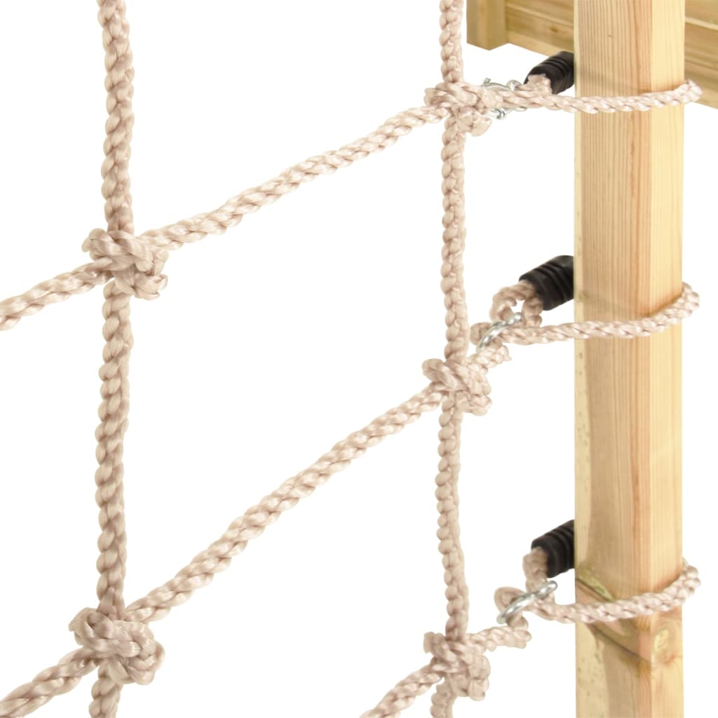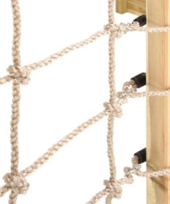 Deze tuinspeelset is voorzien van een ladder met 5 treden, een klimwand met stenen, een netwand, een touwladder met houten sporten en een stang om aan te tuimelen. Het klimrek is gemaakt van geïmpregneerd grenenhout en staal, en is hierdoor rotbestendig en stevig. Ook kunnen je kleintjes hun vrienden uitnodigen om mee te doen. Ze kunnen op en neer klimmen en ook voorwaarts door de horizontale spijlen klimmen. Het speeltoestel biedt je kinderen veel trainingsmogelijkheden, zoals pull-ups, spierstrekkingen, enz.