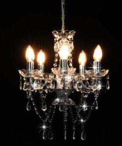 De transparante druppeltjes en het frame met 5 armen zorgen voor een elegante charme en een optimale verlichting. Je kunt ervoor kiezen om E14 peertjes met verschillende lichtkleuren te gebruiken om een sfeer van ontspanning en rust te creëren.