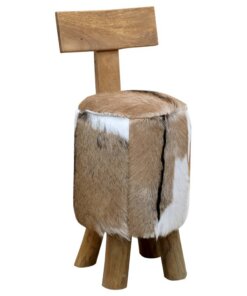 Onze comfortabele geitenleren kruk is een perfecte aanvulling op elke woonkamer of slaapkamer. Hij is een ideaal zitmeubel en tilt je interieur naar een hoger niveau dankzij zijn moderne uitstraling. De kruk heeft een zachte zitting van geitenleer met schuimvulling en biedt je optimaal zitcomfort. Bovendien zorgen de massief teakhouten poten voor superstabiliteit en uitstekende duurzaamheid. De massief suarhouten rugleuning en steunen van onze kruk zijn ook zeer duurzaam.