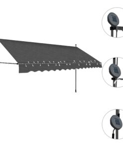vidaXL Luifel handmatig uitschuifbaar met LED 350 cm antracietkleurig