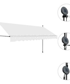 vidaXL Luifel handmatig uitschuifbaar met LED 350 cm crèmekleurig