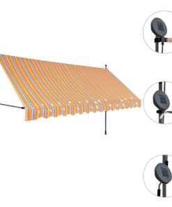 vidaXL Luifel handmatig uitschuifbaar met LED 350 cm geel en blauw