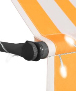 vidaXL Luifel handmatig uitschuifbaar met LED 350 cm wit en oranje