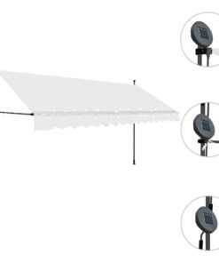 vidaXL Luifel handmatig uitschuifbaar met LED 400 cm crèmekleurig