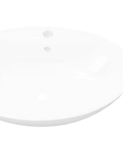 Deze ovale wastafel van hoogwaardig keramiek is een stijlvolle toevoeging aan iedere badkamer of toilet. Zijn hoogglans afwerking geeft hem een modern maar elegant ontwerp.