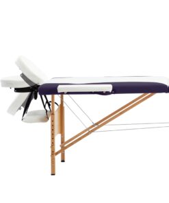 vidaXL Massagetafel inklapbaar 2 zones hout wit en paars - Image 3