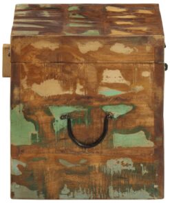 Deze kist is gemaakt van gerecycled hout, wat betekent dat elk meubel uniek is en net iets anders is dan de rest. Het meubel is gemaakt van hergebruikt hout en heeft eigenschappen van verschillende houtsoorten, zoals teakhout, acacia, mangohout en saalhout. Hergebruikt hout is stevig, stabiel, duurzaam en mooi. De spijkergaten of houtnerven dragen de geschiedenis met zich mee en nodigen een andere generatie uit om het met hun geschiedenis te doordrenken. Door dit meubilair in huis te plaatsen laat je zien dat je bewust met het milieu bezig bent.