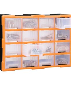 Deze opberger heeft 16 medium lades om aan verschillende behoeften te voldoen. Hij houdt je handgereedschappen en accessoires, zoals bevestigingsmiddelen, georganiseerd en binnen handbereik. De gereedschapsorganiser is gemaakt van slagvast kunststof, dat zowel duurzaam als stabiel is. De lades zijn gemaakt van doorzichtig kunststof zodat je de inhoud snel kunt zien. Hij is ideaal voor het opbergen van moeren, bouten, schroeven, spijkers, algemene bevestigingsmiddelen en onderdelen.
