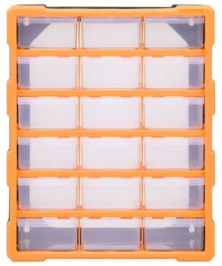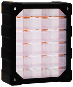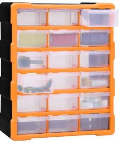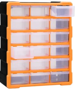 Deze opberger heeft 18 medium lades om aan verschillende behoeften te voldoen. Hij houdt je handgereedschappen en accessoires, zoals bevestigingsmiddelen, georganiseerd en binnen handbereik. De gereedschapsorganiser is gemaakt van slagvast kunststof, dat zowel duurzaam als stabiel is. De lades zijn gemaakt van doorzichtig kunststof zodat je de inhoud snel kunt zien. Hij is ideaal voor het opbergen van moeren, bouten, schroeven, spijkers, algemene bevestigingsmiddelen en onderdelen.