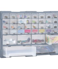 Deze onmisbare organiser heeft 38 lades en is ontworpen om een grote verscheidenheid aan spullen netjes in op te bergen. Hij kan ook worden gebruikt als naai- of gereedschapsdoos.