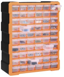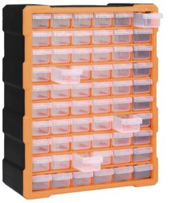 Deze opberger heeft 60 kleine lades die je handgereedschappen en accessoires, zoals bevestigingsmiddelen, georganiseerd en binnen handbereik houden. De gereedschapsorganiser is gemaakt van slagvast kunststof, dat zowel duurzaam als stabiel is. De lades zijn gemaakt van doorzichtig kunststof zodat je de inhoud snel kunt zien. Hij is ideaal voor het opbergen van moeren, bouten, schroeven, spijkers, algemene bevestigingsmiddelen en onderdelen.