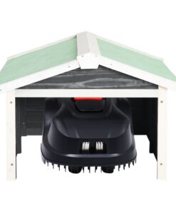 Dit robotmaaierhuisje, gemaakt van massief vurenhout, is duurzaam en geschikt voor buitengebruik. Het beschermt je grasmaaier en het laadstation effectief tegen regen, sneeuw en schadelijke uv-straling. Daarmee wordt de levensduur van de grasmaaier en bijbehorende accessoires verlengd. Het rustieke en eenvoudige ontwerp past in de meeste tuinen. Deze grasmaaieroverkapping is snel te monteren en gemakkelijk te verplaatsen, omdat er geen pinnen of andere bevestigingsmiddelen nodig zijn.