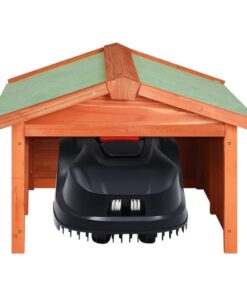 Dit robotmaaierhuisje, gemaakt van massief vurenhout, is duurzaam en geschikt voor buitengebruik. Het beschermt je grasmaaier en het laadstation effectief tegen regen, sneeuw en schadelijke uv-straling. Daarmee wordt de levensduur van de grasmaaier en bijbehorende accessoires verlengd. Het rustieke en eenvoudige ontwerp past in de meeste tuinen. Deze grasmaaieroverkapping is snel te monteren en gemakkelijk te verplaatsen, omdat er geen pinnen of andere bevestigingsmiddelen nodig zijn.
