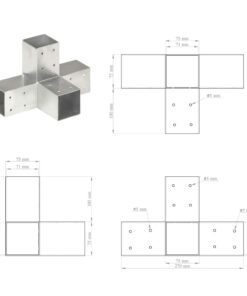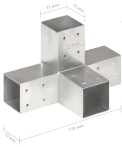De elektolytisch verzinkte verbinding kan balken gemakkelijk verbinden en stabiliseren. Alle verbindingsdelen zijn voorgeboord. Deze balkenaansluiting is ontworpen voor 4 vierkante, houten balken van 71 mm.