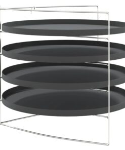 Deze set, bestaande uit 4 pizzapannen en een stalen rek, is een geweldige oplossing om 4 pizza’s of andere snacks en diepvriesproducten tegelijk te bereiden!