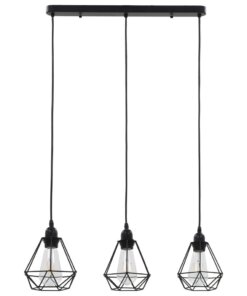 De mooie en moderne metalen plafondlamp, bestaande uit 3 diamantvormige lampenkappen, is een blikvanger in elke ruimte. Hij is een perfecte toevoeging aan eetkamers, bars, foyers, cafés en andere ruimtes.