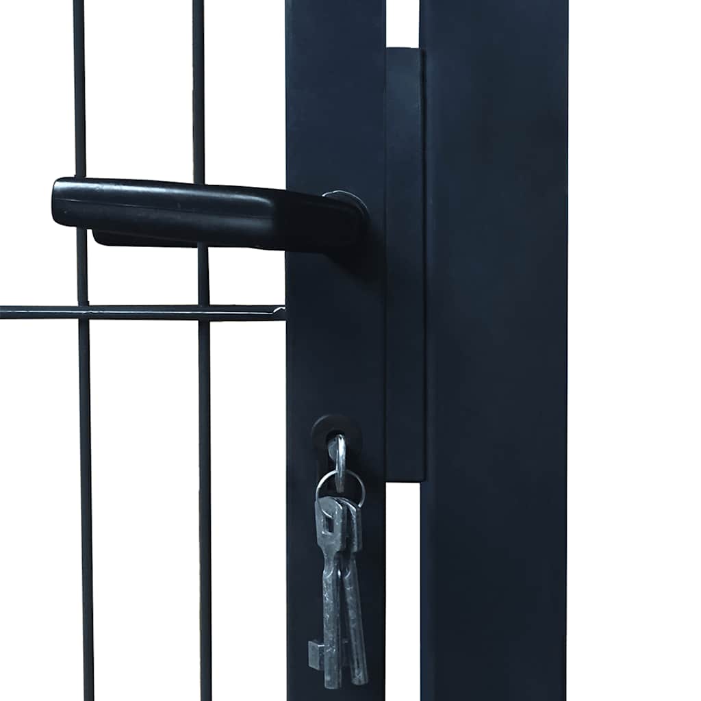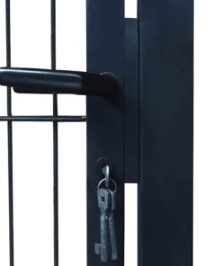Doordat de poort met dikke verticale en dubbele horizontale draden gelast is, is het extra stevig. Deze tuinpoort geeft een hoge mate van veiligheid en tegelijkertijd zorgt het voor een fantastische entree van je eigendom. Het is gemaakt van sterk staal en gepoedercoat voor bescherming tegen roest en corrosie. Deze tuinpoort wordt geleverd met stevige scharnieren voor eenvoudige installatie, met een sluiting van zware kwaliteit en 2 bijpassende sleutels.