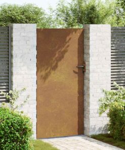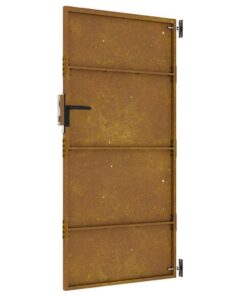 - Duurzaam materiaal: de metalen poort is van cortenstaal gemaakt. Cortenstaal wordt ook wel weerbestendig staal genoemd. Dit is van nature corrosiewerend. Het staal ontwikkelt een roestige beschermlaag tegen corrosie wanneer het voor het eerst wordt blootgesteld aan atmosferische omstandigheden. Je hoeft het dus niet te schilderen. Hierdoor kun je besparen op onderhouds- en reparatiekosten. De kenmerkende bruine kleur op het cortenstaal is een echte blikvanger. Ook is cortenstaal uitzonderlijk duurzaam en gaat het jarenlang mee.