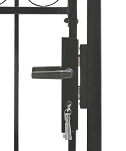 Met zijn elegante, boogvormige topontwerp en sterke horizontale beugels om het frame te versterken, biedt onze tuinpoort veel veiligheid, terwijl hij tegelijkertijd een fantastische toegangspoort tot je terrein vormt. De poort is gemaakt van sterk gepoedercoat staal dat roest- en uv-bestendig is.