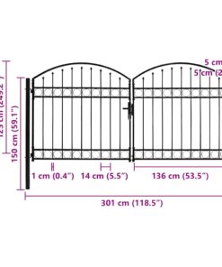 vidaXL Poort met gebogen bovenkant dubbel 300×125 cm staal zwart