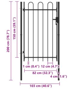vidaXL Poort met gebogen bovenkant enkel 1×1,5 m staal zwart