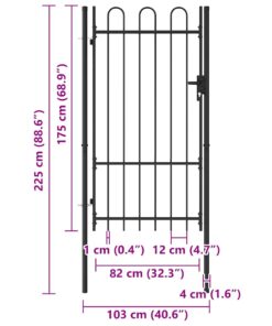 De verticale staven zijn voorzien van gebogen punten en het sterke horizontale frame biedt extra stevigheid. Onze tuinpoort zorgt voor een hoge mate van privacy en veiligheid terwijl hij ook een stijlvolle ingang tot je terrein is. De poort is gemaakt van stevig staal en is gepoedercoat om hem te beschermen tegen roest en corrosie.