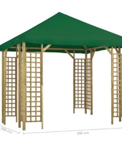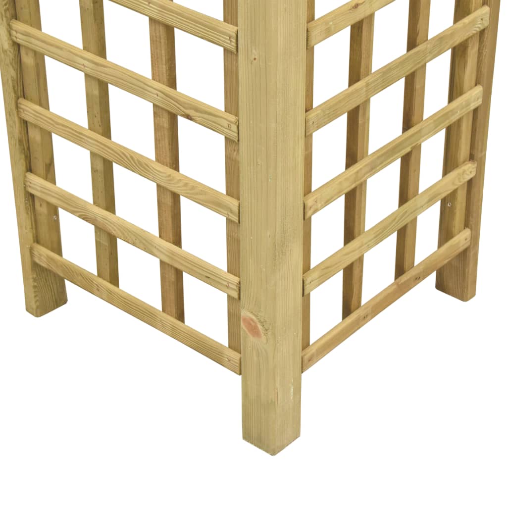 Het dak is gemaakt van 100% polyester met PVC-coating en beschermt je tegen de schittering en schadelijke uv-stralen van direct zonlicht. Het is water- en stofbestendig. De luifel heeft een massieve en robuuste grenenhouten constructie met decoratieve vierkante details, waardoor hij stevig en opvallend is. Het frame is sterk, stabiel en slijtagebestendig. Dit product is eenvoudig te monteren.