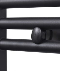 Dankzij het circulatiesysteem met heet water, wat geen elektriciteit verbruikt, drogen je handdoeken erg snel. De radiator heeft 18 stalen buizen met een diameter van 22 mm en is zwart geschilderd. De buizen zijn extra dik en leveren een hoge warmteafgifte. Aan de boven- en onderzijde zitten waterverbindingen voor een optimale watercirculatie.