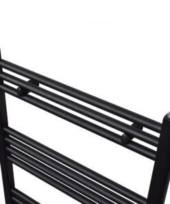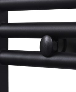 Dankzij het circulatiesysteem met heet water, wat geen elektriciteit verbruikt, drogen je handdoeken erg snel. De radiator heeft 12 stalen buizen met een diameter van 22 mm en is zwart geschilderd. De buizen zijn extra dik en leveren een hoge warmteafgifte. Aan de boven- en onderzijde zitten waterverbindingen voor een optimale watercirculatie.