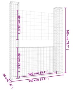 vidaXL Schanskorf U-vormig met 2 palen 140x20x200 cm ijzer