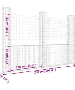 vidaXL Schanskorf U-vormig met 3 palen 260x20x200 cm ijzer