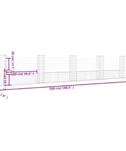 vidaXL Schanskorf U-vormig met 5 palen 500x20x100 cm ijzer