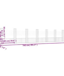 vidaXL Schanskorf U-vormig met 7 palen 740x20x150 cm ijzer