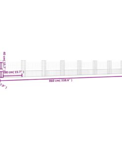 vidaXL Schanskorf U-vormig met 8 palen 860x20x100 cm ijzer