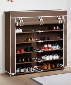 vidaXL Schoenenkast met hoes 115x28x110 stof bruin