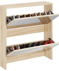 Dit moderne, stijlvolle schoenenkastje met spiegel is de perfecte oplossing om de kamer opgeruimd te houden.