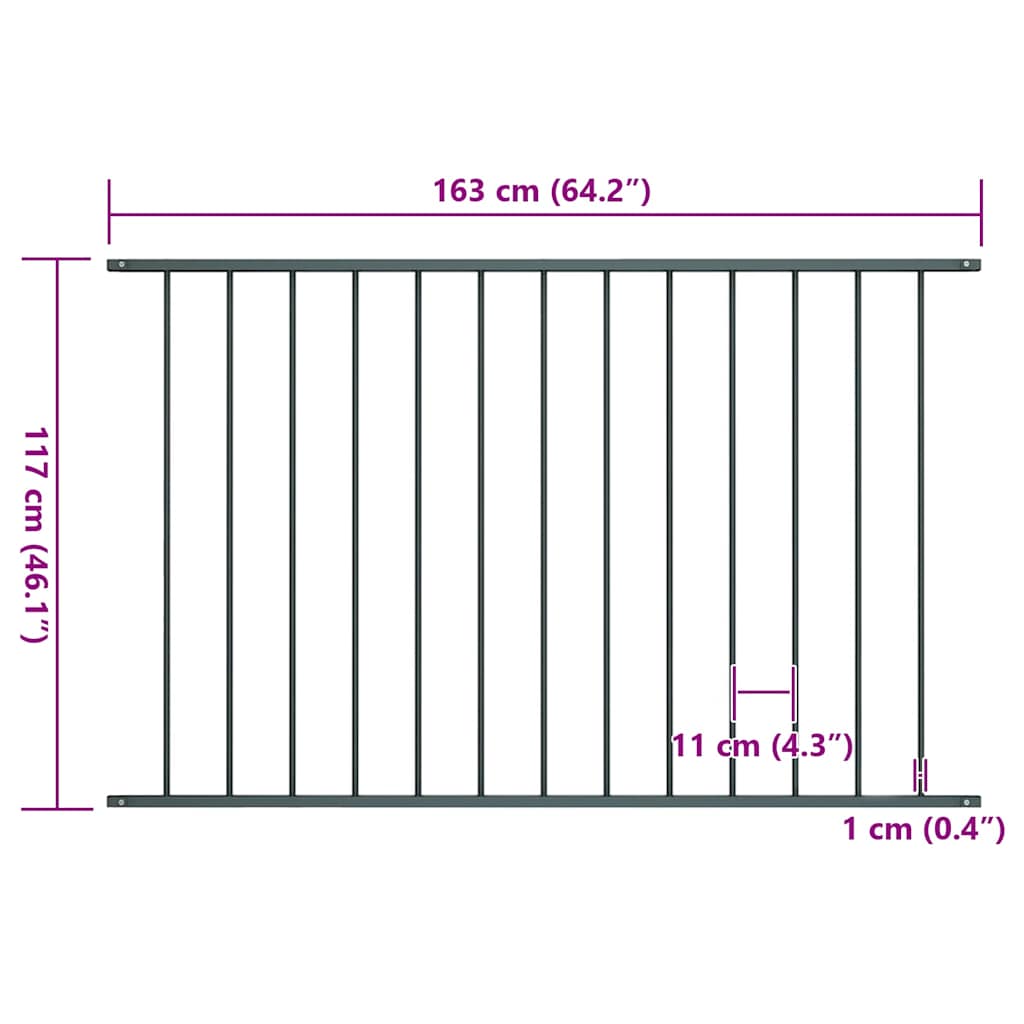 Dit schuttingpaneel is gemaakt van sterk gepoedercoat staal en vormt in combinatie met schuttingpalen (niet inbegrepen) een stevige en duurzame afscheiding voor uw tuin. Ons schuttingpaneel is weer- en corrosiebestendig en is ideaal om ongewenste gasten van uw terrein te weren. Met de meegeleverde bevestigingsmaterialen kan het tuinhek eenvoudig in de grond worden geplaatst.