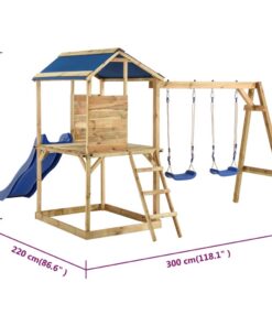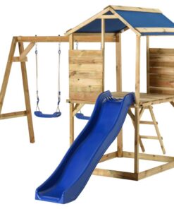 Het stevige frame is vervaardigd van geïmpregneerd grenenhout, waardoor het stabiel en rotbestendig is. De schommels worden met metalen haken aan het frame bevestigd en de kleurrijke handgrepen zorgen voor extra veiligheid. Ouders kunnen hun kinderen zorgeloos laten spelen, aangezien het speelhuis voldoet aan de meest actuele veiligheidsnormen. De speelhuisset heeft een massief houten frame, twee schommels en een klimladder. Met al deze functies kan deze complete speelset worden gebruikt om te klimmen, kruipen en verstoppen. Je kleintjes kunnen ook hun vriendjes uitnodigen om mee te doen.