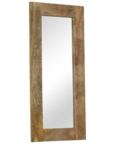 Deze houten spiegel heeft een massief mangohouten frame, straalt een vintage charme uit en is met zijn unieke ontwerp een perfecte en aantrekkelijke decoratie voor je huis. Hij kan in de gang of in de badkamer worden gebruikt.