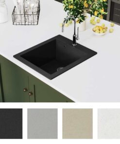 Deze keukengootsteen is gemaakt van hoogwaardig graniet en is kras- en slagbestendig en zeer duurzaam. Hij is ook vuilafstotend en vlekbestendig en dus gemakkelijk schoon te maken. Deze spoelbak is hittebestendig tot 280 °C.