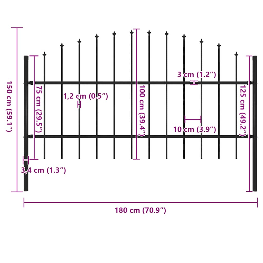 vidaXL Tuinhek met speerpunt staal 181×100 cm zwart