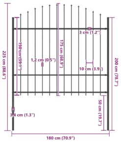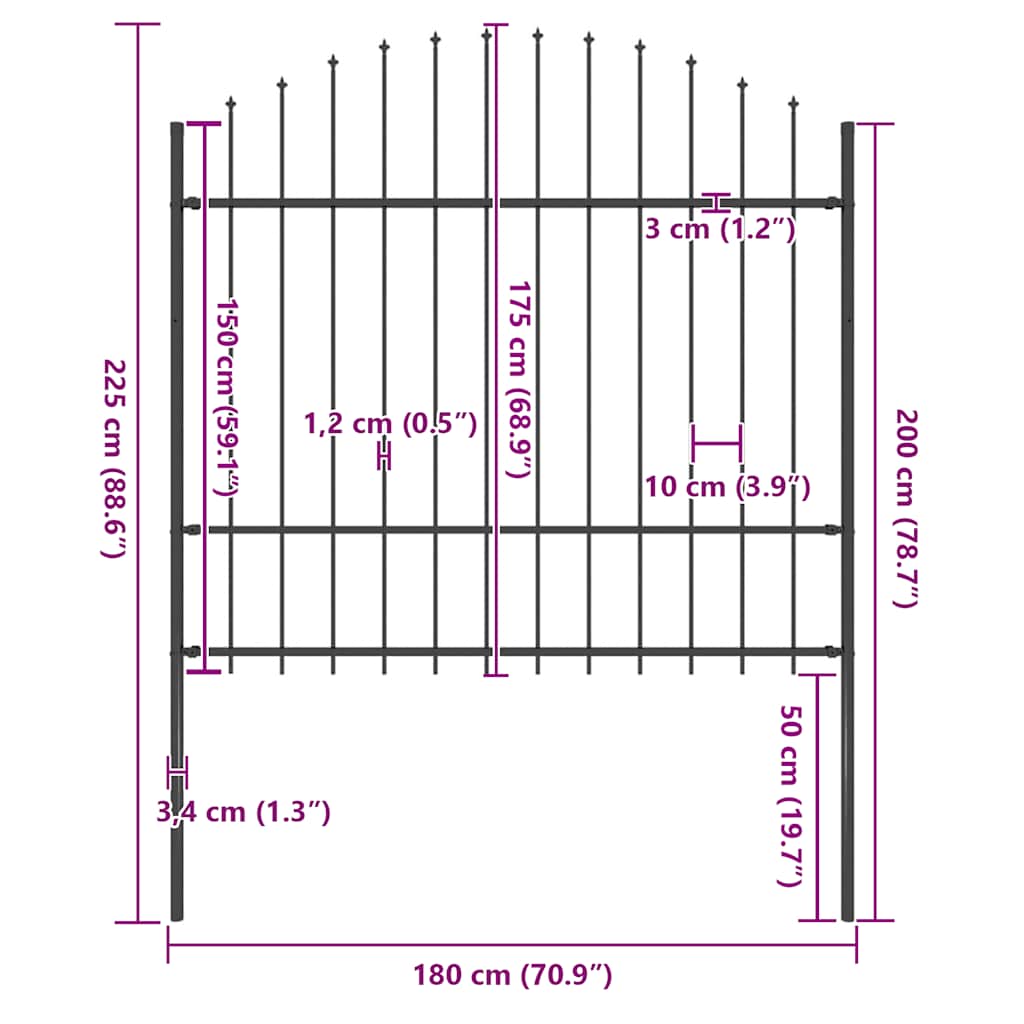 Het hek is gemaakt van robuust staal waardoor het buitengewoon stabiel, stevig en duurzaam is. Door de verticale buizen met speerpunten en sterke horizontale stang ter versteviging van het frame, biedt het tuinhek veel privacy en veiligheid. Het hekpaneel is eenvoudig te monteren.